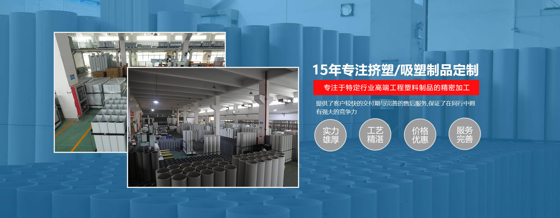8000平米標準廠房,1500噸年產 能,引進國內高端品牌真空吸塑成型機和五軸精密加工中心。